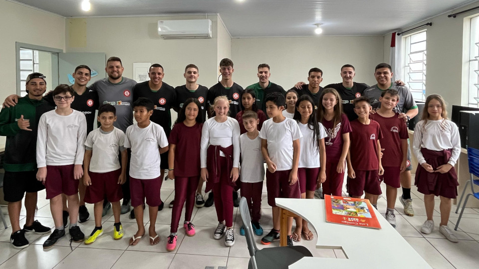 Liderados por Mateus Matana (Preparador Físico) e Rafael Dos Santos (Preparador de Goleiro), os atletas Edu e Dado (Goleiros), Leonel (Fixo), Rafinha, Bernardo e Betinho (alas) e Gui e Pezinho (Pivôs) interagiram com os estudantes, brincaram na quadra esportiva, distribuíram autógrafos e entregaram ingressos para que acompanhem os jogos da Taça Farroupilha.